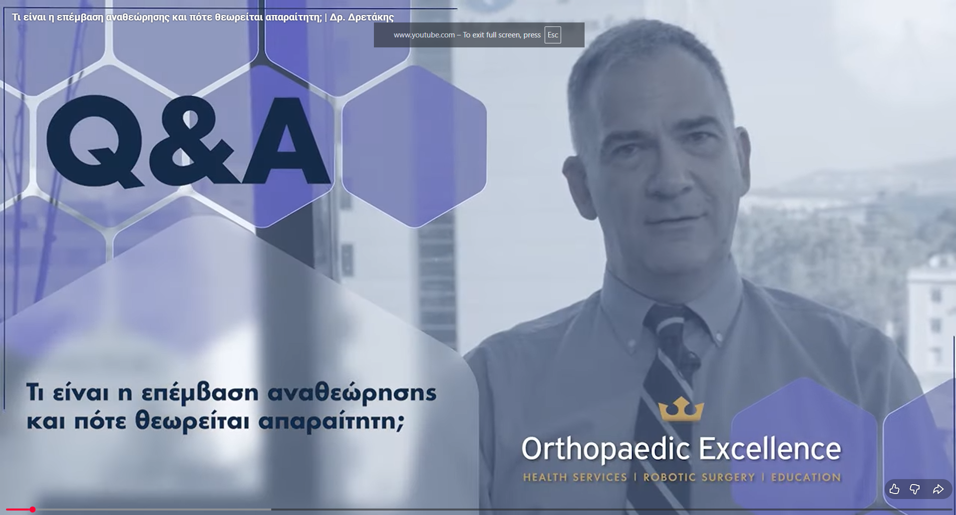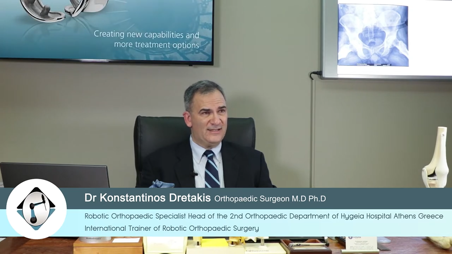 Γιατί Ρομποτική Αρθροπλαστική; Οι επεμβάσεις αντικατάστασης γόνατος και ισχίου ξεκίνησαν την δεκαετία του 80 και άλλαξαν την ζωή εκατομμυρίων ανθρώπων στον κόσμο. Έτσι επάξια κατάκτησαν το τίτλο της επέμβασης του αιώνα γιατί όχι μόνο σήκωσαν από τις αναπηρικές καρέκλες του πάσχοντες αλλά γιατί επιπλέον άλλαξαν το προσδόκιμο επιβίωσης της ανθρωπότητας. Οι επεμβάσεις αρθροπλαστικής γόνατος και ισχίου γίνονται μόνο από εξειδικευμένους ορθοπαιδικούς χειρουργούς και είναι λάθος να νομίζει κανείς ότι κάθε ορθοπαιδικός κάνει αυτές τις δύσκολες και τεχνικά απαιτητικές επεμβάσεις. Υπάρχουν ορθοπαιδικοί που δεν έχουν κάνει ποτέ στην ζωή τους μια τέτοια επέμβαση. Τα αποτελέσματα των αρθροπλαστικών ισχίου και γόνατος κρίνονται από την αντιμετώπιση του πόνου την καλή κίνηση της άρθρωσης και τις δραστηριότητες του ασθενούς χωρίς πόνο μετά την επέμβαση. Η ρομποτική αρθροπλαστική ξεκίνησε από τον υπογράφοντα στην Ελλάδα το 2014 μετά από εκπαίδευση και πιστοποίηση στις ΗΠΑ. Από τότε ο υπογράφων εκπαιδεύει και πιστοποιεί ιατρούς σε όλον τον κόσμο ως International Robotic Trainer. ΟΙ ρομποτικές επεμβάσεις έφεραν την απόλυτη ακρίβεια στις επεμβάσεις αρθροπλαστικής ισχίου και γόνατος και έφεραν εκπληκτικά αποτελέσματα στους ασθενείς. Με τις ρομποτικές επεμβάσεις που πραγματοποιούμε όχι απλά περπατάνε οι ασθενείς που δεν μπορούσαν πριν την επέμβαση αλλά μπορούν να απολαύσουν τις αθλητικές δραστηριότητες που έκαναν πριν στο ίδιο επίπεδο. Οι μικρές διαφορές χιλιοστών που δεν διακρίνει εύκολα το ανθρώπινο μάτι είναι εύκολο να αναδειχθούν και να αντιμετωπιστούν με την χρήση της ρομποτικής τεχνολογίας. Οι επεμβάσεις ρομποτικής αρθροπλαστικής γόνατος και ισχίου έχουν τις εξής διαφορές βιβλιογραφικά τεκμηριωμένες σε σχέση με τις απλές επεμβάσεις αρθροπλαστικής. · Μεγάλη ακρίβεια λόγω χρήσης Αξονικής τομογραφίας τρισδιάστατου μοντέλου και ρομποτικού βραχίονα. · Μικρότερος τραυματισμός μαλακών μορίων κατά την επέμβαση · Καλύτερο αποτέλεσμα κίνησης της άρθρωσης · Ανάγκη για λιγότερα αναλγητικά μετά την επέμβαση · Μικρότερη ανάγκη φυσικοθεραπείας · Μακροβιότητα της αρθροπλαστικής λόγω ακριβούς τοποθέτησης. Δρ Κωνσταντίνος ΔρετάκηςΔιδάκτωρ Πανεπιστημίου ΚρήτηςΔιεθνής Εκπαιδευτής ΡομποτικήςΔιευθυντής Β Ορθοπ. Κλινικής Υγεία